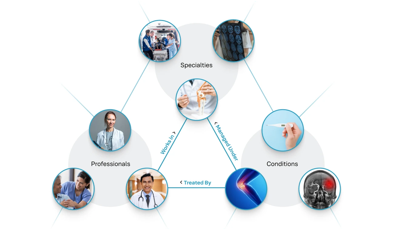 場所、専門家、製品、サービスなどの間の複雑な関係を構造化されたエンティティやフィールドとして定義し、現実の世界を反映させます。このようなつながりによって、AIは、生成された回答の中で貴社のブランドを正確に理解し、表現するために必要な文脈を得ることができます。